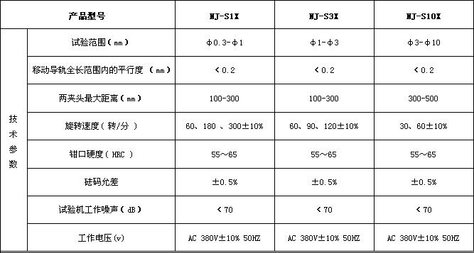 型號:NJ-S1X,NJ-S3X,NJ-S10X 一、用途:該扭轉試驗機主要用于測定直徑φ0.3-φ1mm,φ1-φ3mm,φ3-φ10mm金屬線材在單向或雙向扭轉中承受塑性變形的能力,試驗過程中可以顯示線材的表面缺陷。主要適用于科研部門、工礦企業和大專院校的力學實驗室用來測定材料的扭轉性能,特別適合生產線材單位在線檢測及使用線材單位的進貨檢驗。 二、性能特點: l、扭轉試驗機有2-3種旋轉速度可供選擇,如30、60、90、120、180、300轉/分,通過皮帶塔輪調整; 2、可夾持線材長度300-100mm、500-300mm;用滑輪導向砝碼加軸向力,液晶顯示試驗圈數,試件斷裂后試驗圈數值自動鎖存。